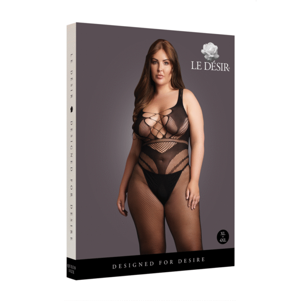 Fishnet kanten bodystocking met open kruis voor sensuele curvy look – LIN