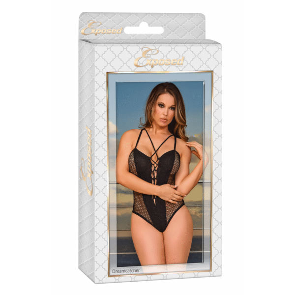 Kanten halter body met diepe V-hals en g-string voor sensuele look – Exposed