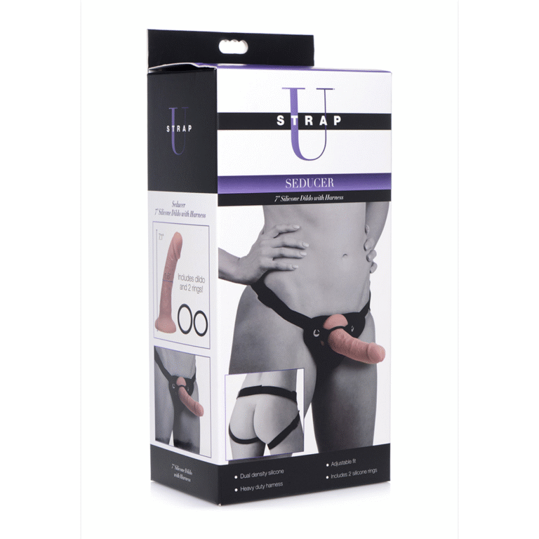 strap-on met verstelbaar harnas – Seducer – Siliconen Dildo met Harness – 7 / 18 cm