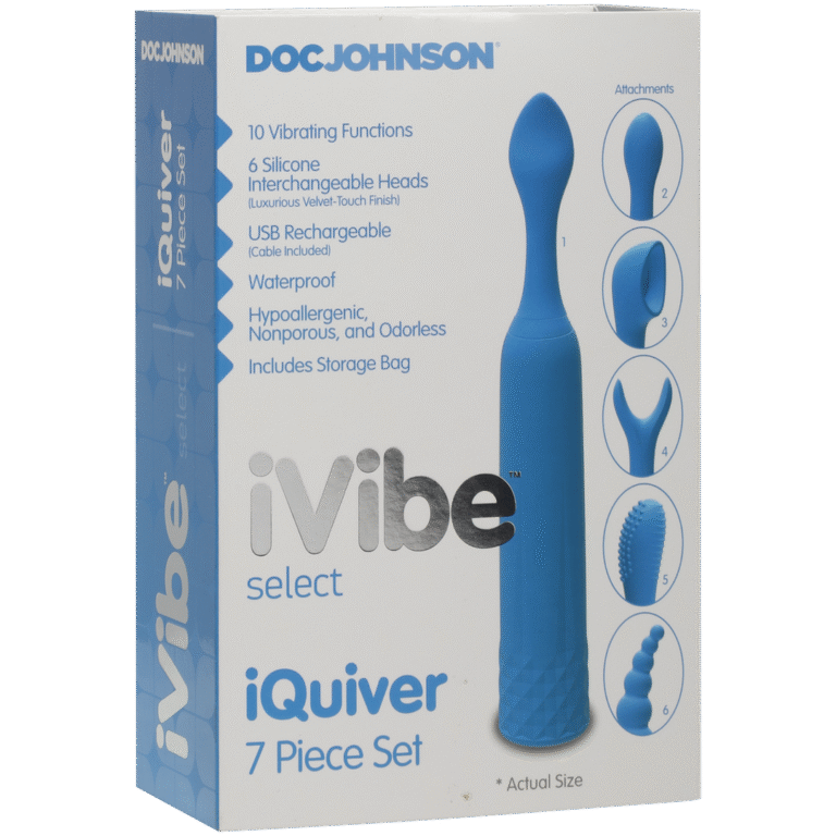 mini vibrator – 6 verwisselbare koppen en 10 standen – iVibe Select iQuiver (Periwinkle/Red Velvet) Doc Johnson