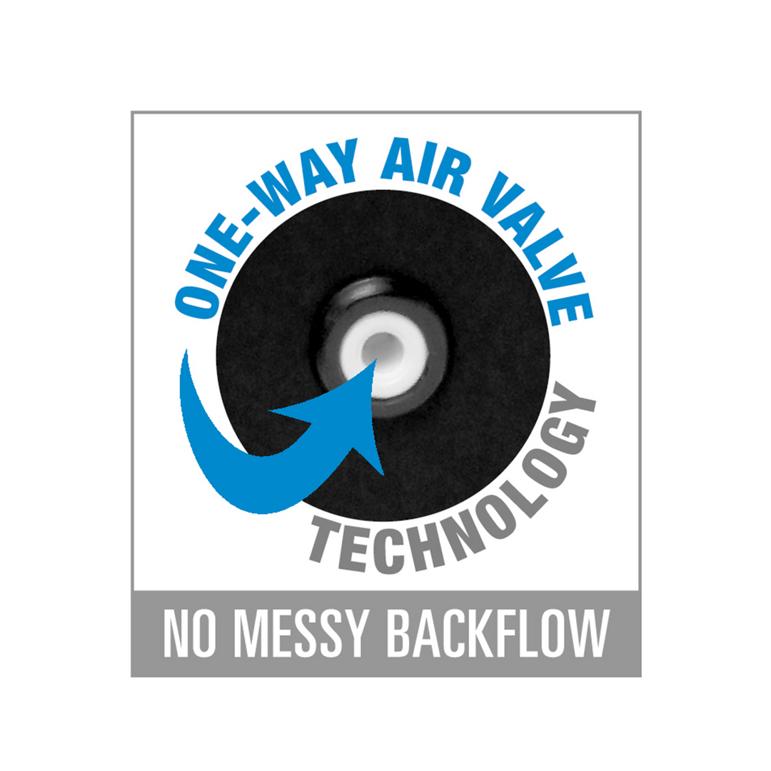 De luchtkleptechnologie in de bol is ontwikkeld om rommelige terugstroom te verminderen en om het aantal bijvullingen te beperken. Dit helpt om je routine overzichtelijk te houden. De 8” (20 cm) silicone flex-tip is ontworpen om flexibel te zijn, zodat je tijdens het gebruik meer controle ervaart. Het extra 3” (8 cm) opbergmondstuk biedt een compacte optie voor wanneer je minder lengte nodig hebt of voor het netjes bewaren van je set.