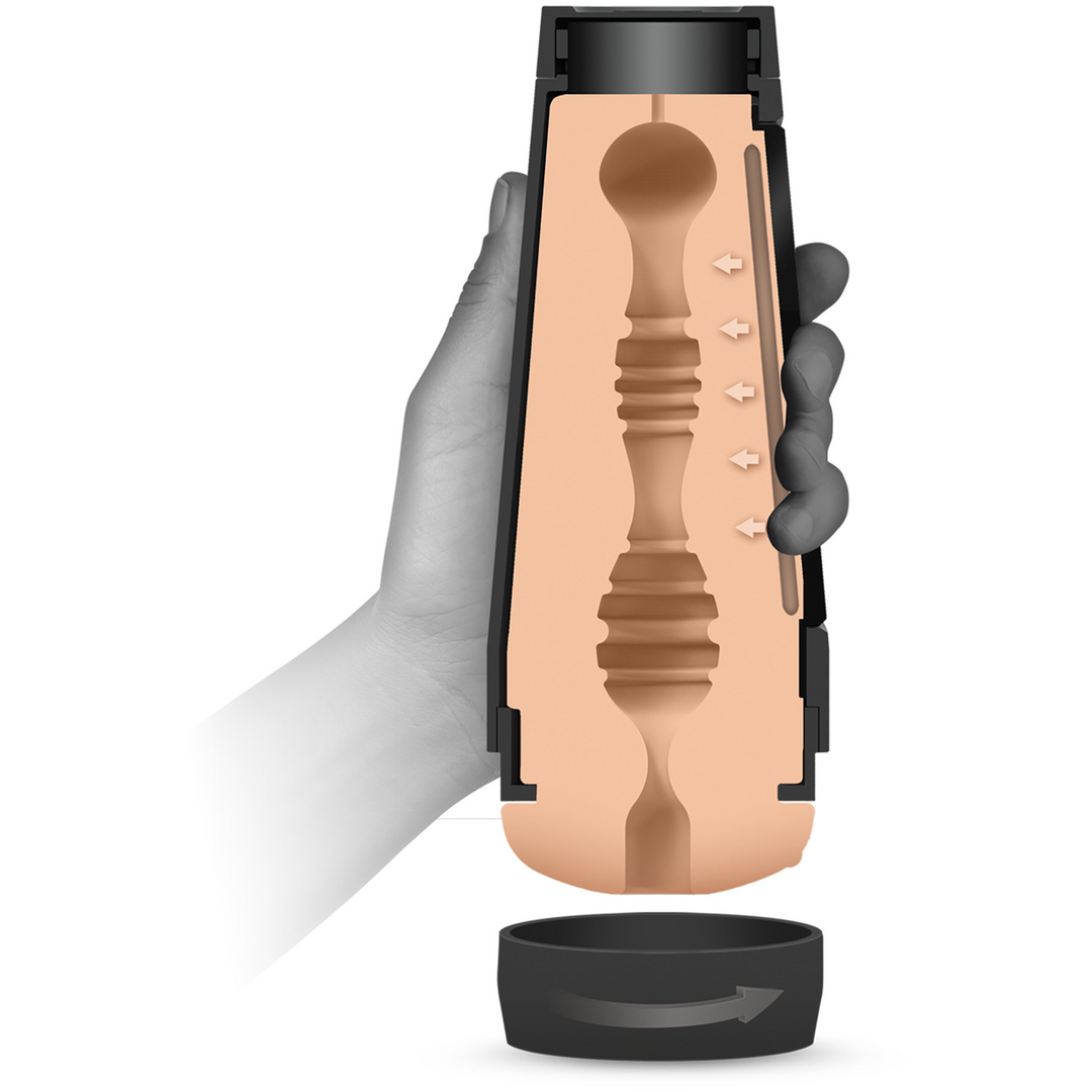 Een van de grote pluspunten van deze anus masturbator is de mogelijkheid om de druk en zuigkracht zelf te regelen. In de harde buitenhoes zit een knijpplaat verwerkt. Door tijdens het gebruik in die plaat te knijpen of deze los te laten, verander je direct hoeveel druk je voelt aan de binnenkant. Wil je het strakker en intenser? Dan knijp je wat steviger. Wil je het even wat milder en meer ontspannen? Laat de knijpplaat dan los en neem wat gas terug.