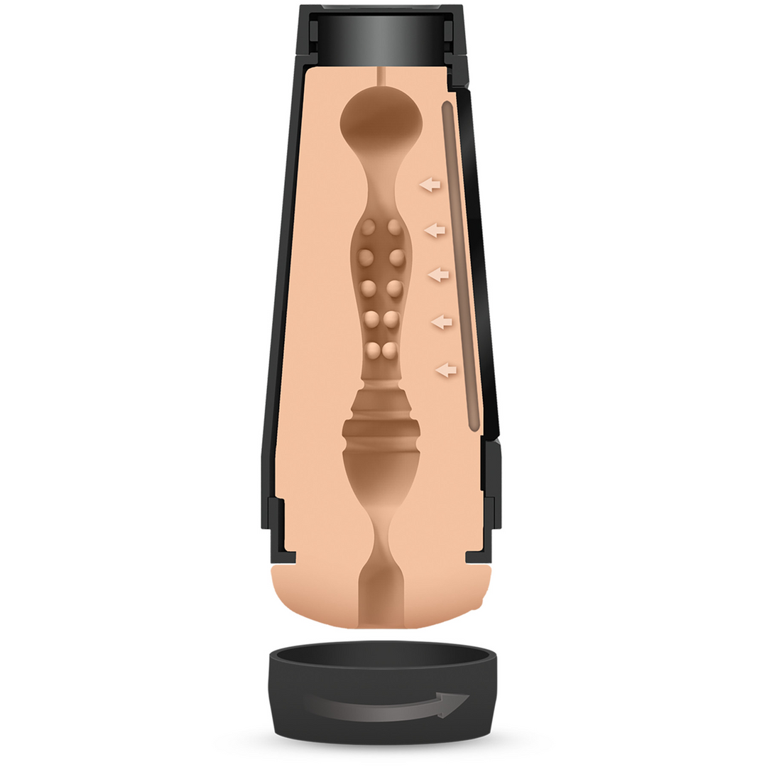 De binnenkant van de masturbator is strak en getextureerd. Dat betekent dat je onderweg verschillende structuren en nuances voelt die reageren op jouw bewegingen. Je bepaalt zelf of je langzaam en gevoelig wilt bewegen, of juist wat krachtiger. In alle gevallen blijft het ULTRASKYN materiaal zacht en ondersteunend, wat erg prettig is als je een realistic masturbator zoekt die niet te hard of te klinisch aanvoelt.
