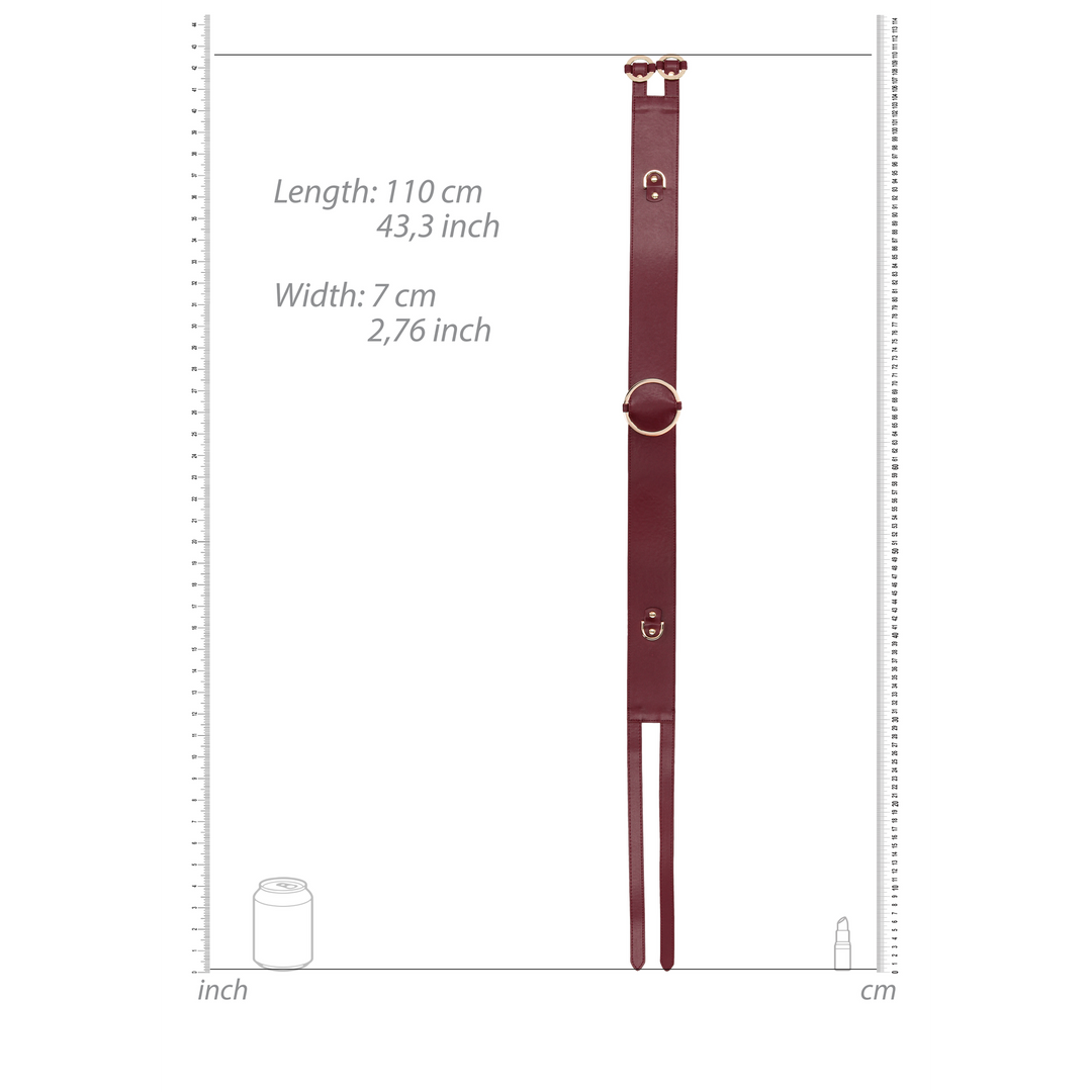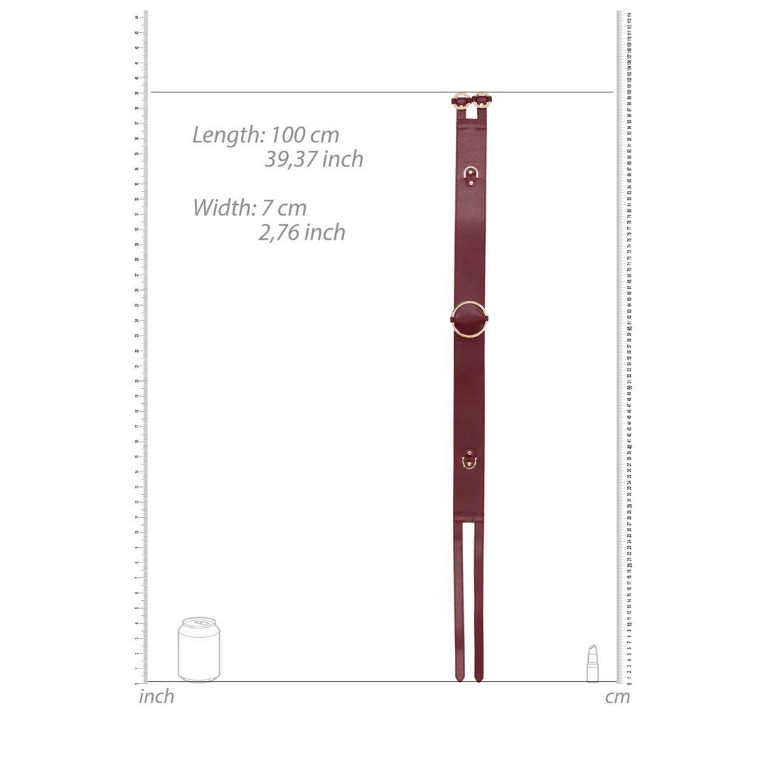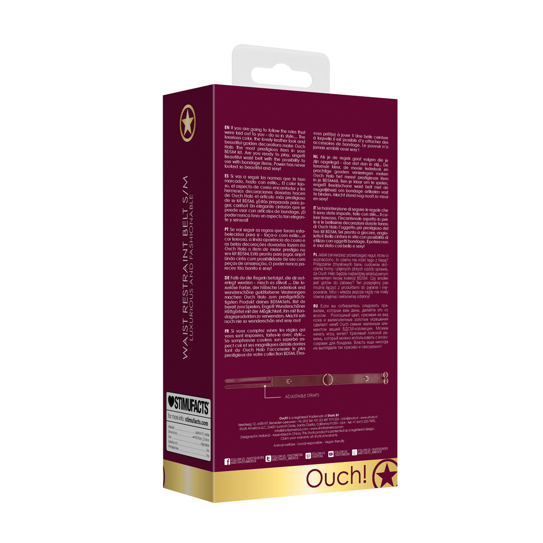 De Ouch Halo tailleband is gemaakt om een gevoel van prestige en speelsheid te geven wanneer je hem aantrekt. De combinatie van een chique kleur en een lederlook met gouden details zorgt voor een stijlvolle, opvallende uitstraling. Het draagt prettig doordat de sluiting verstelbaar is, en je kunt er gemakkelijk andere bondageaccessoires aan bevestigen voor extra variatie. Deze tailleband voelt tegelijkertijd zacht en stevig aan, en past mooi bij een collectie vol statementstukken.