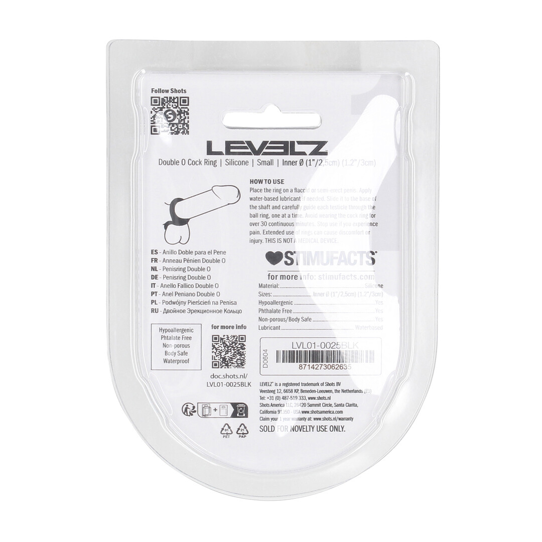 Gebruik je de cockring voor het eerst, bouw dan rustig op. Houd de draagtijd in het begin kort en verleng die alleen als het goed en comfortabel blijft aanvoelen. Zo kun je stap voor stap ontdekken hoe deze cockring met dubbele lus – S – zwart het beste bij jouw lichaam en wensen past.
