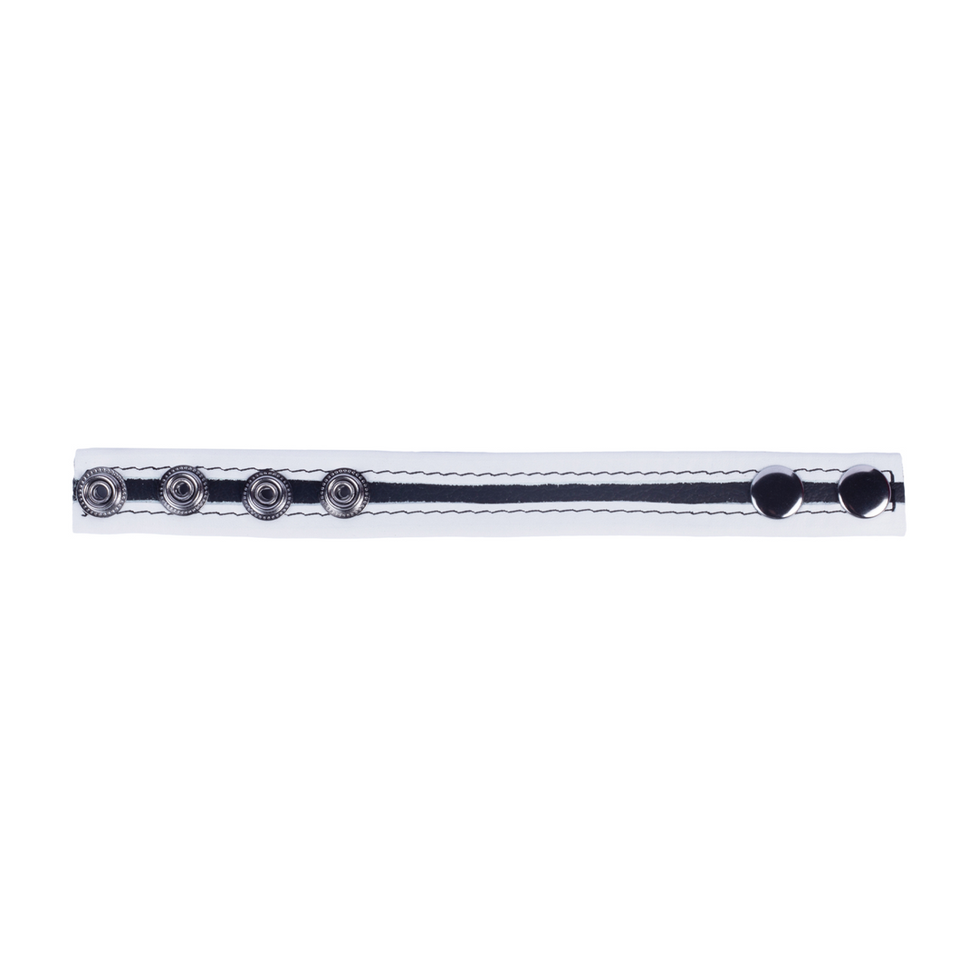 Deze witte cockring onderscheidt zich door de combinatie van echt leer, een verstelbare diameter en het gebruiksgemak van metalen drukknoopjes. Waar een vaste penisring één maat heeft, kun je bij deze ring de band stap voor stap strakker of losser zetten. Zo kun je rustig uitproberen welke stand voor jou prettig aanvoelt, zonder dat je hoeft te worstelen met een te strakke of te ruime ring.