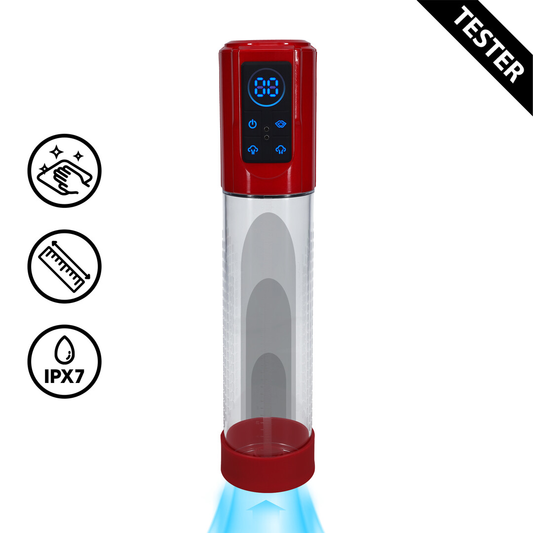 De elektrische penispomp met waterdicht ontwerp – Tester is er voor mannen die op een toegankelijke, comfortabele manier willen experimenteren met penispompen. Of je nu nieuwsgierig bent naar penispvergroting, graag speelt met vacuüm of gewoon wilt ontdekken wat een krachtige penis pomp voor je erecties kan betekenen: deze gebruiksvriendelijke elektrische penispomp maakt het eenvoudig. Met één druk op de knop bouw je een stevig vacuüm op, terwijl de zachte siliconen inlegslang zorgt voor een comfortabele afsluiting. Dankzij het volledig waterdichte ontwerp kun je bovendien zorgeloos spelen in de badkamer of onder water, precies zoals jij dat prettig vindt.