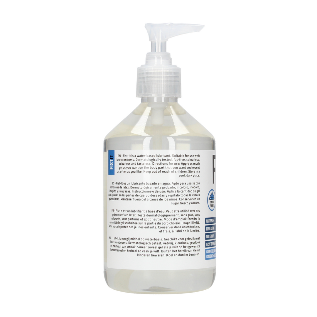 Samengevat: Fist It Professional is een extra dikke gel op waterbasis, geschikt voor latex-condooms en voor alle seksspeeltjes, dermatologisch getest en volledig neutraal in kleur, geur en smaak. Je gebruikt zoveel als je wilt en herhaalt zo vaak als je fijn vindt. Bewaar ‘m koel en donker en buiten bereik van kinderen, dan ligt hij klaar wanneer jij dat ook bent. Met 500 ml in de fles heb je een solide, betrouwbare basis binnen handbereik.