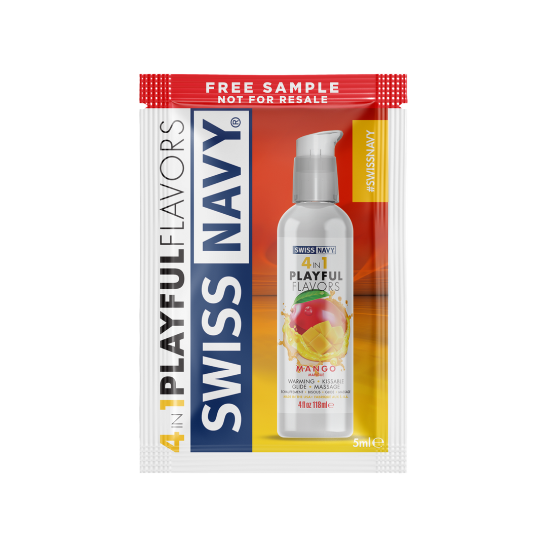 Glijmiddel met smaakje – 4 in 1 Playful Flavors, eetbaar en verwarmend – Mango – 5 ml Sachet – Swiss Navy