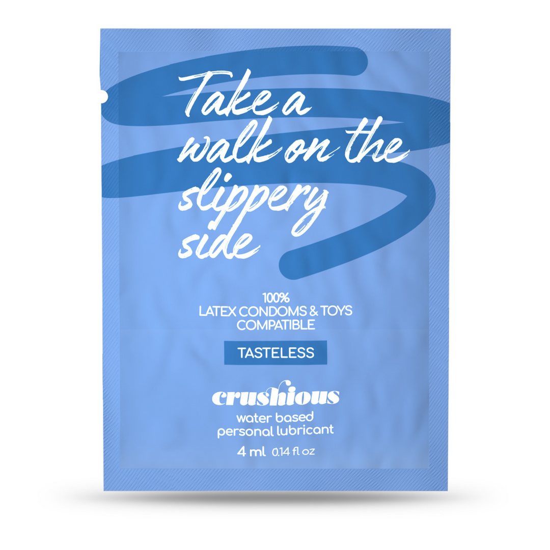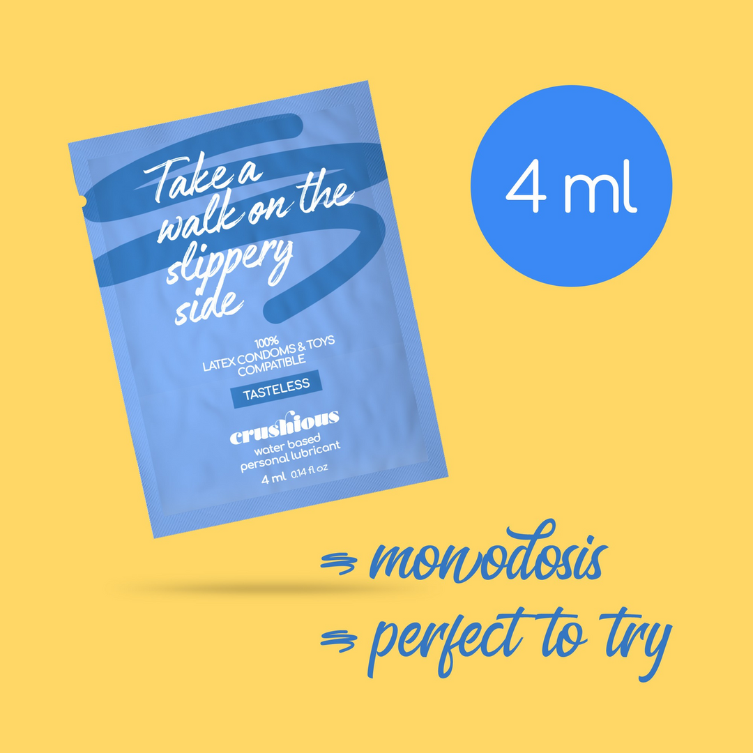 Zoek je een betrouwbaar glijmiddel in een handige meeneemverpakking? Dit Crushious glijmiddel op waterbasis zit in een 4 ml zakje voor éénmalig gebruik. Ideaal om het product uit te proberen, mee te nemen in je tas of klaar te leggen voor een spontaan moment. De hoeveelheid is afgestemd op één sessie en laat zich soepel verdelen voor een prettig, langdurig gevoel van vochtigheid.