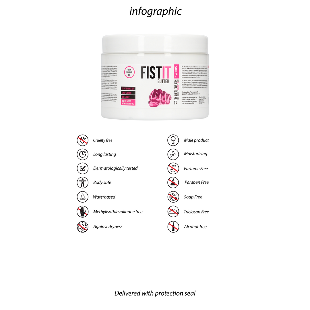 Met 500 ml heb je een royaal formaat in huis. Dat is handig als je liever niet steeds opnieuw hoeft te bestellen of als je gewoon graag voldoende op voorraad hebt. Het product komt van Fist It by Shots en draagt de naam Waterbased Sliding Butter — een duidelijke knipoog naar de soepele, boterachtige glij-eigenschappen waar je op kunt rekenen.