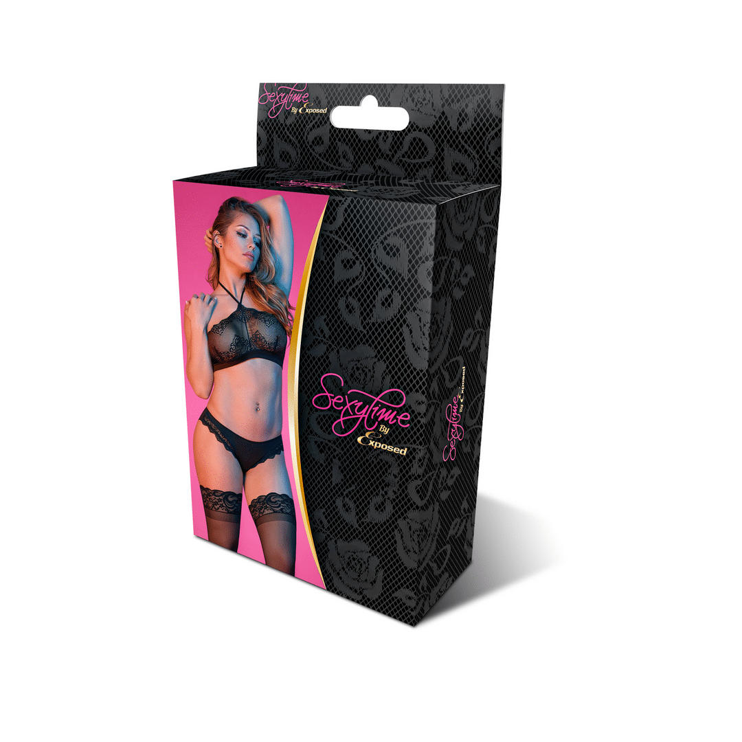 Zodra je deze bandeau en panty set aantrekt voel je direct dat er aandacht is besteed aan silhouet en uitstraling. De halterband die om de nek wikkelt en de kanten accenten geven een zachte, romantische vibe zonder poespas. Het is een set die zowel subtiel als speels is en past bij momenten waarop je je net even anders wilt voelen. Veel mensen kiezen dit type omdat het comfortabel aanvoelt en er toch verzorgd uitziet.