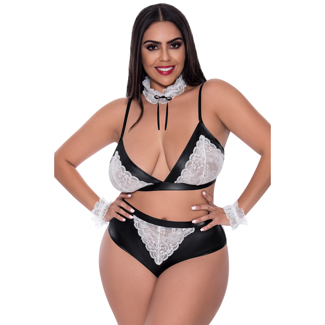 • Compleet setje met bralette, kanten kraag, polsbandjes en bijpassende slip voor een verzorgde uitstraling