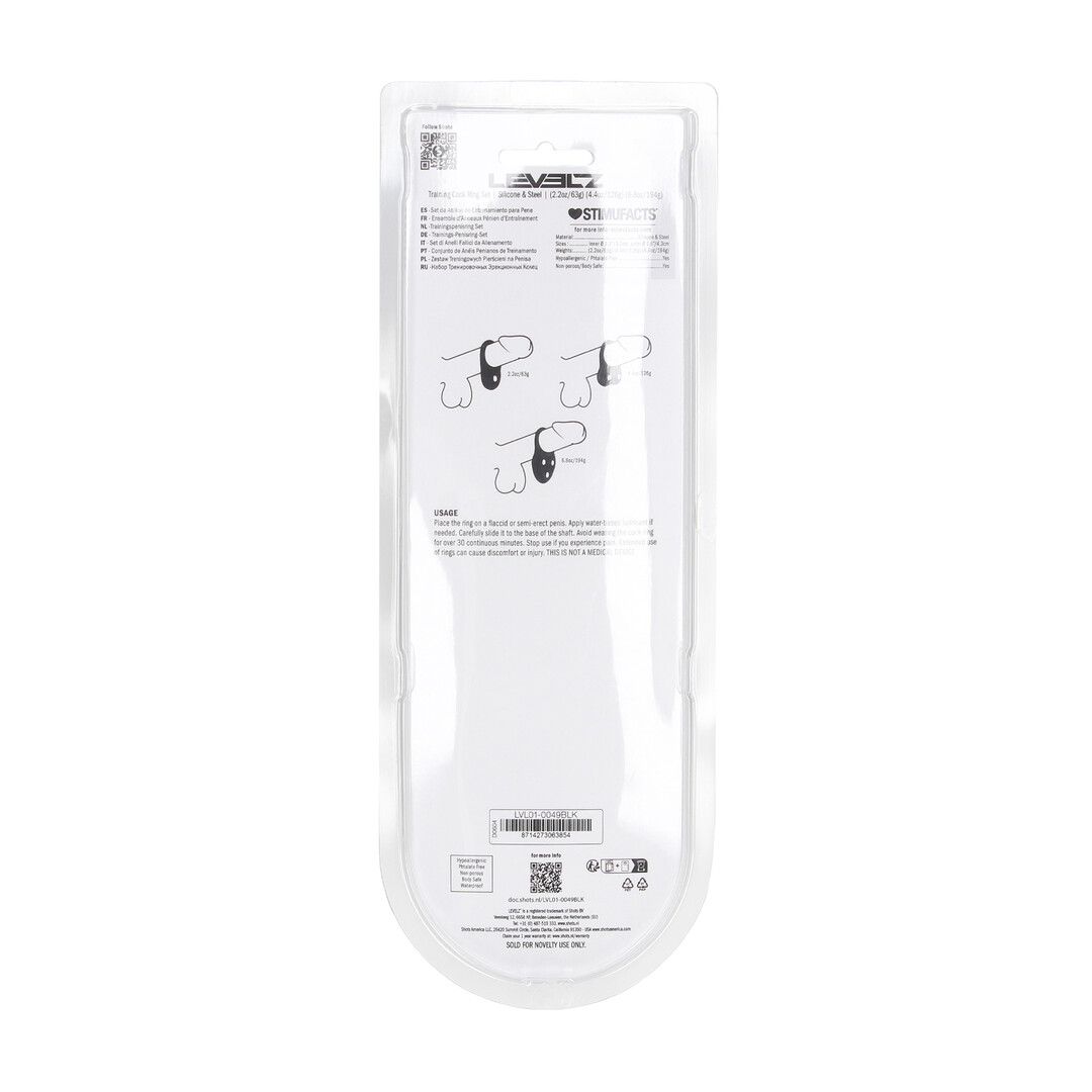 Om deze trainings cockring set zo fijn mogelijk te gebruiken, helpt het om de tijd te nemen bij het omdoen. Kies in het begin altijd voor de ring die het meest comfortabel aanvoelt en ga pas kleiner als je daar echt aan toe bent. Je doel is dat je de druk en het gewicht duidelijk voelt, maar dat het nog steeds prettig blijft.