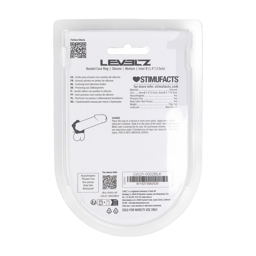 Deze niet-vibrerende cockring met kralen design in zwart is ideaal voor mannen die hun spel net even wat intenser willen maken, zonder poespas of ingewikkelde functies. Hij biedt extra stevigheid, voelt zacht aan en geeft je een fijn, subtiel gevoel van stretch en druk. Of je nu iets nieuws wilt proberen, je erectie wilt ondersteunen of gewoon wilt ontdekken wat een cockring voor jouw plezier kan doen: deze siliconen ring uit de LEVELZ collectie is een toegankelijke, comfortabele keuze voor dagelijks gebruik.