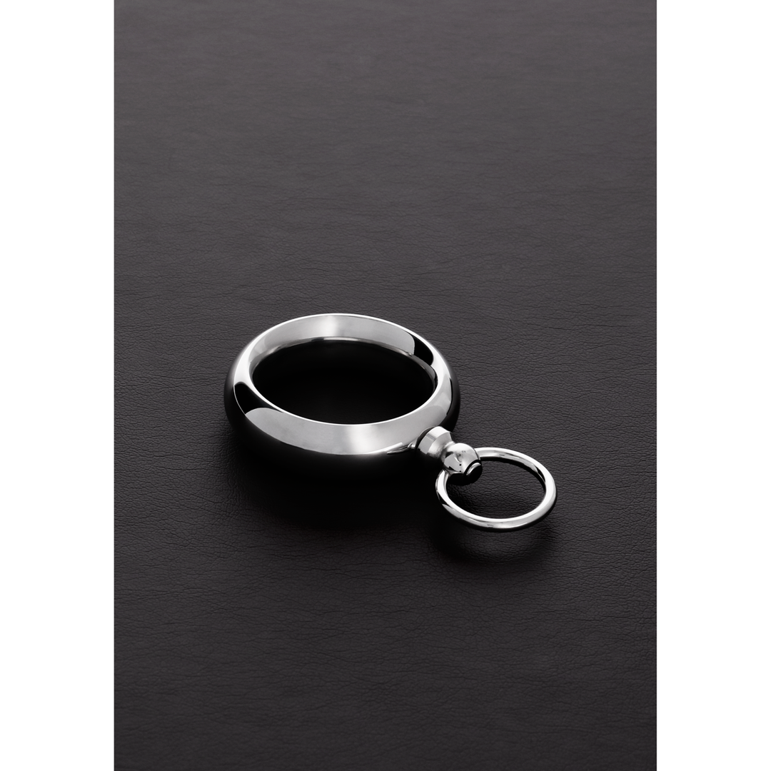 De O-ring maakt deze cockring extra veelzijdig. Het is niet alleen een stevige metalen penisring, maar ook een subtiel ankertje voor BDSM-spel. Gebruik een leren riem, koord of clip aan de O-ring en je voegt een extra laag van controle, focus en spanning toe aan je spel.