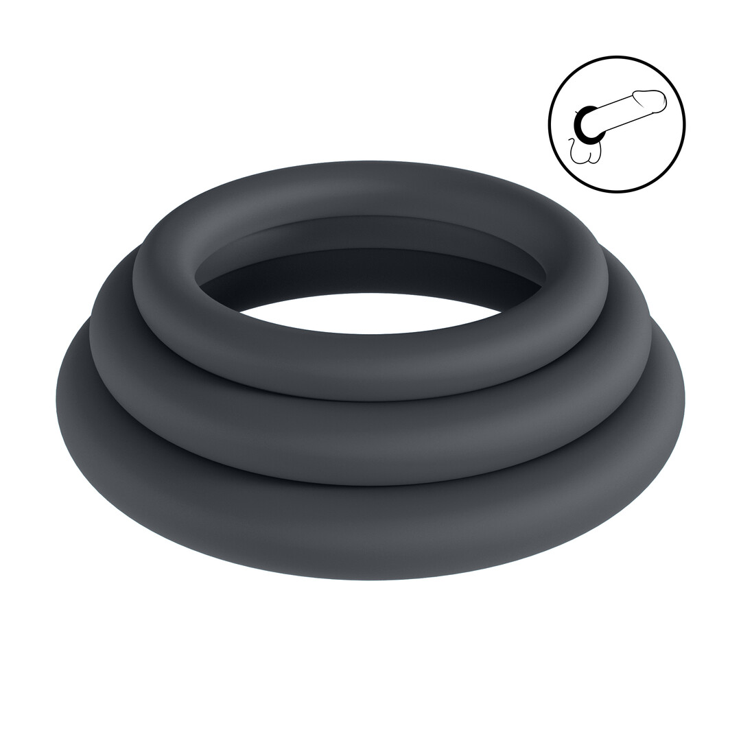 • Set van 3 niet-vibrerende cockringen in L, XL en XXL.