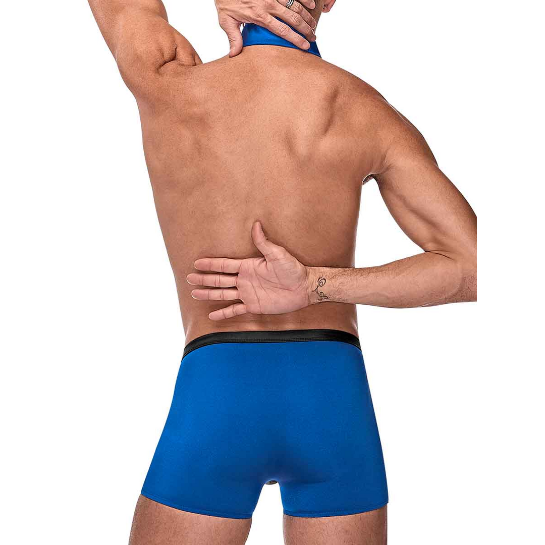 De drie-delige set werkt samen om het lichaam subtiel te omlijnen. De contrasterende pouch trekt aandacht en creëert een focuspunt op het vooraanzicht. De cire tailleband geeft een nette afwerking rond de taille en helpt het geheel compact te laten ogen. Samen zorgen deze elementen voor een krachtige, afgetekende uitstraling die geschikt is voor actieve role-play.