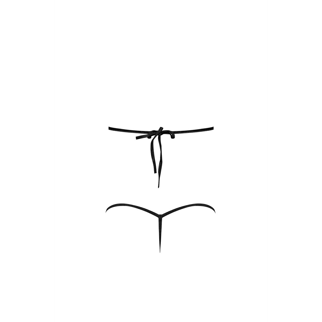 Ook de bijpassende g-string volgt dit strappy cage-ontwerp, zodat je hele silhouet mooi in balans blijft. De bandjes leggen subtiel de nadruk op je taille en heupen, zonder dat het zwaar of massief oogt. Het resultaat is een uitgesproken fetishlook die toch luchtig blijft, omdat de huid zichtbaar blijft tussen de bandjes. Zo ontstaat een krachtige maar elegante lijn rond je lichaam.
