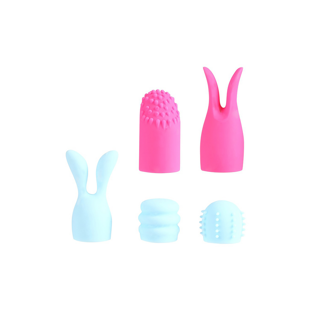 De kracht van deze set zit in de variatie: je krijgt vijf verschillende silicone opzetstukken die elk hun eigen vorm hebben. De exacte vormen worden niet tot in detail omschreven, maar je mag ervan uitgaan dat ze ontworpen zijn om de sensatie van de vibraties op verschillende manieren te laten voelen. Sommige vormen kunnen meer focussen op een gerichte prikkel, andere misschien wat meer verspreid over een groter oppervlak.