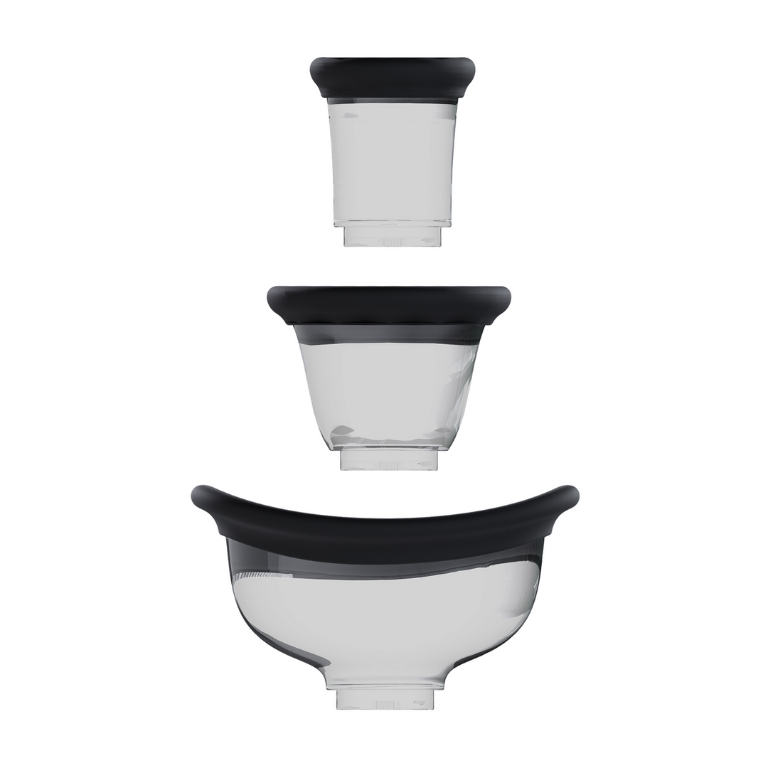 In deze set vind je drie verschillende cups: een borstcup, een vulvacup en een kleinere clitorale cup. De borstcup is bedoeld om één borst per keer te omvatten. Voor mannen die met borstvorming willen spelen, kan dat extra leuk zijn als je dit combineert met bh’s, topjes of andere kledingstukken die de vorm benadrukken. Houd er rekening mee dat je altijd binnen je eigen comfortabele druk blijft.