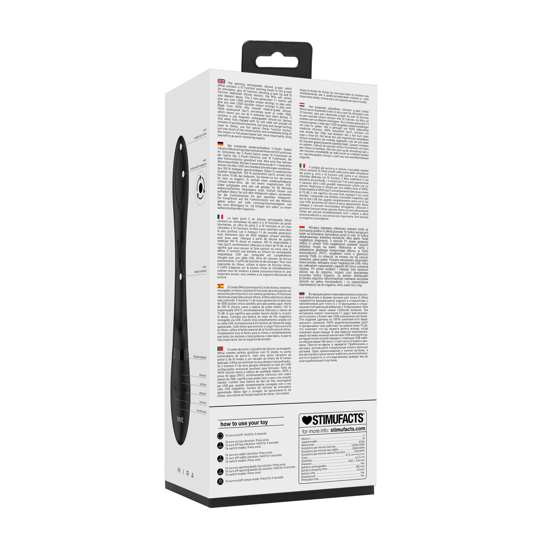 Kortom: Mira is een zachte, stille en veelzijdige rabbit met een eigen twist. De draaiende kralen, 10+10+10 functies en de handige climax-knop geven je alle vrijheid om je favoriete flow te vinden — precies zoals jij het fijn vindt.