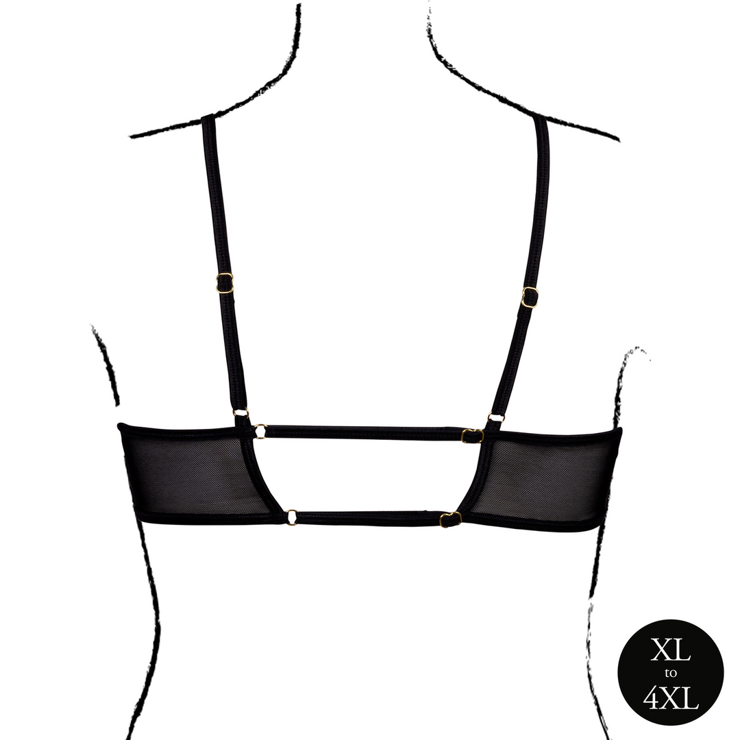 Deze zwarte mesh bh is een veelzijdige basis in je lingeriecollectie. Draag hem onder een transparant topje voor een subtiele, modieuze look of combineer met een bijpassende slip om er een compleet setje van te maken. Voor avondlooks kun je kiezen voor satijnen accenten of een bijpassende jarretelrok. Ook casual outfits kunnen profiteren van dit soort gedurfde details als je wilt spelen met lagen en texturen.