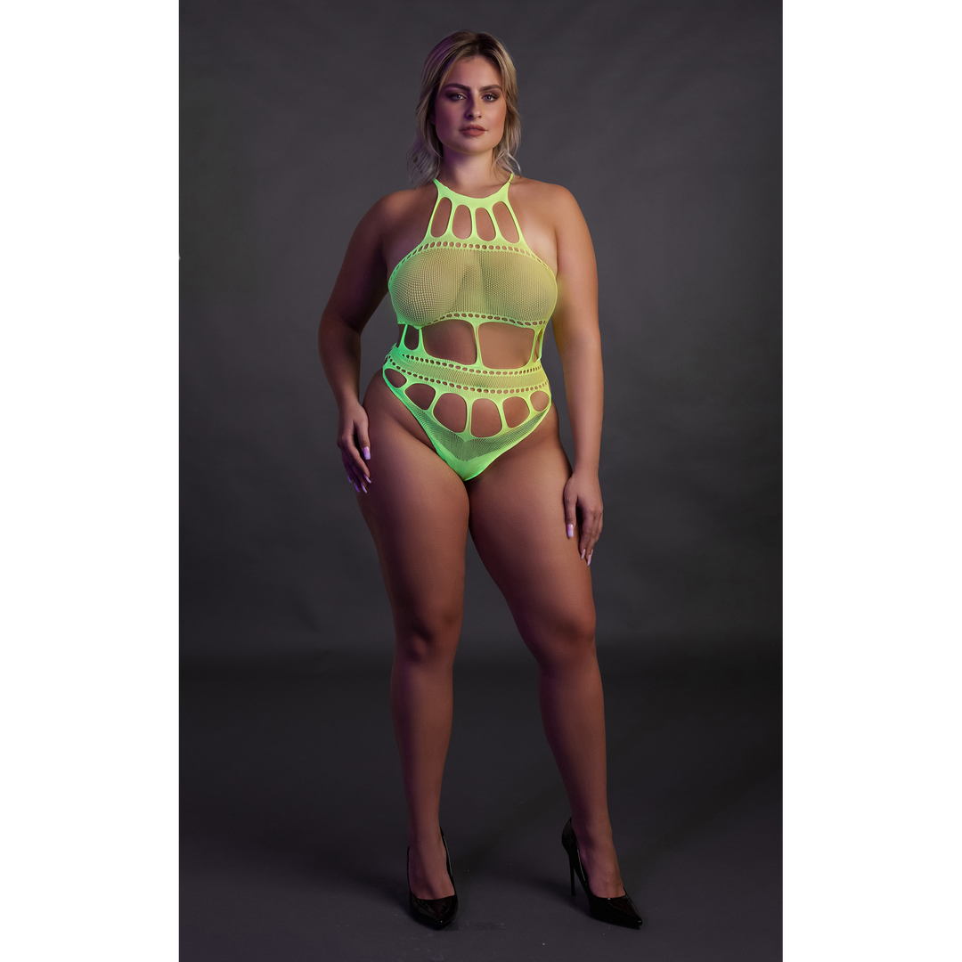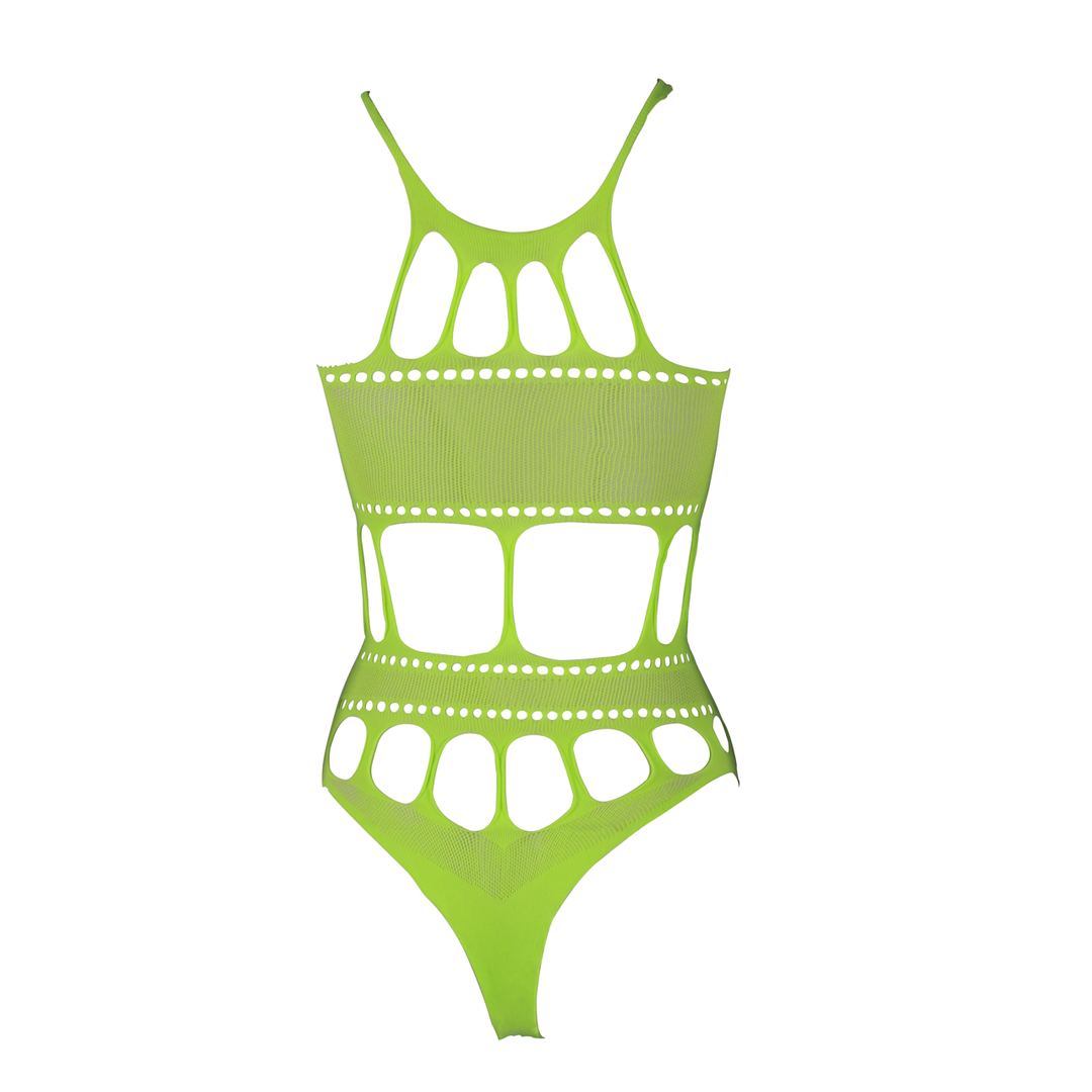 Voor een feestlook draag je de body onder een doorschijnende top of gecombineerd met een hoge rok voor contrast. Als lingeriepiece werkt het fantastisch onder een open kimono of als accent tijdens een intiemer moment. Combineer met minimalistische accessoires om het neon en de halslijn te laten spreken. Denk ook aan lagen: een oversized jasje maakt de look draagbaar voor verschillende gelegenheden.