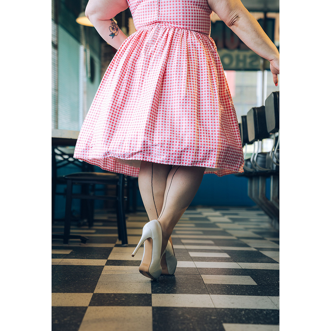 Kix’ies nude sheer thigh-highs met subtiele achternaad en Cubaanse hak geven een elegante, bruidachtige look en blijven dankzij de no-slip-grip de hele dag op hun plek.