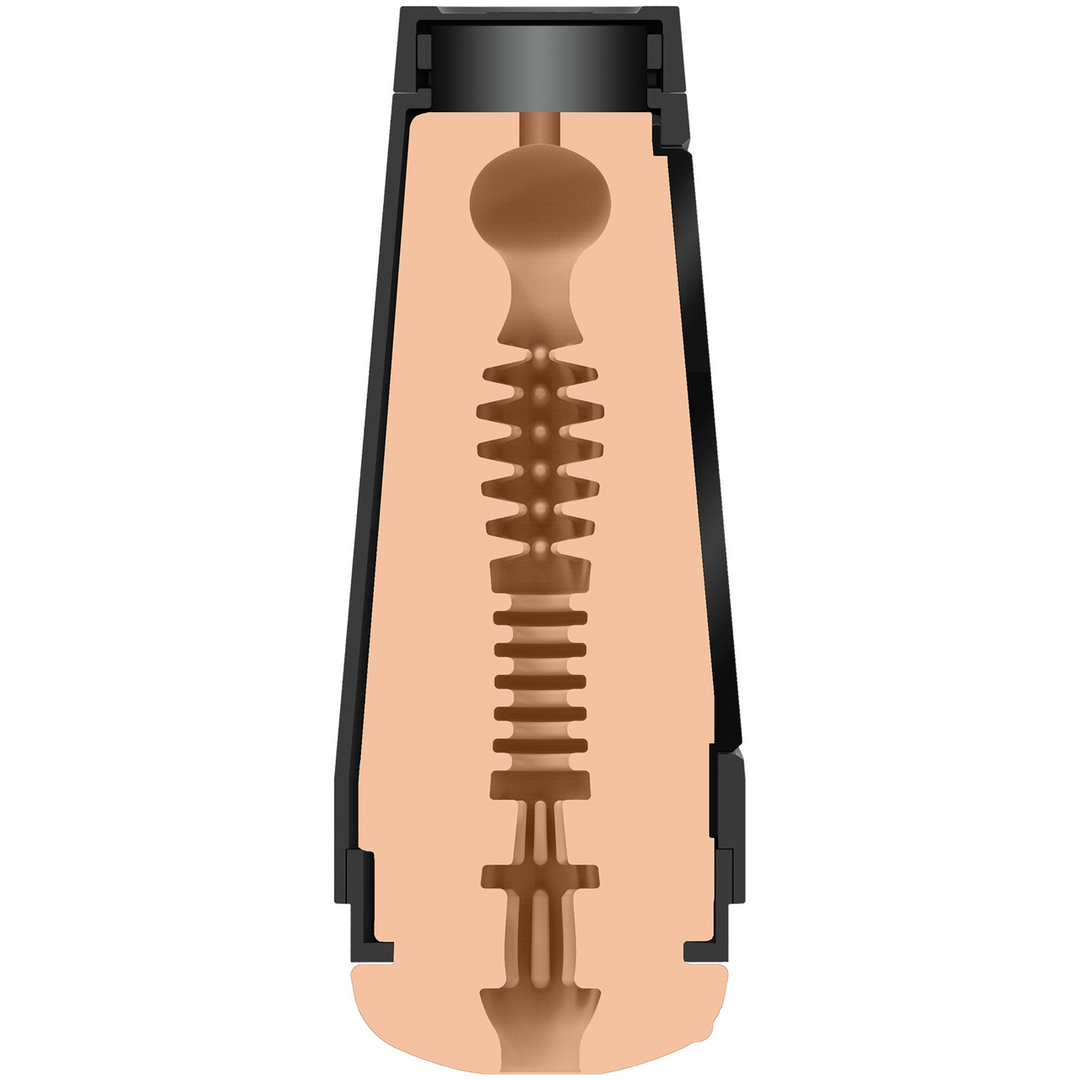 De interne structuur van deze pocket pussy is strak en uniek getextureerd. Dat betekent dat de binnenkant niet egaal is, maar bestaat uit verschillende patronen en structuren. Bij iedere beweging ervaar je daardoor een afwisseling in druk en stimulatie. De combinatie van strakheid en textuur zorgt ervoor dat je bewuster voelt wat er gebeurt, zonder dat het oncomfortabel wordt.