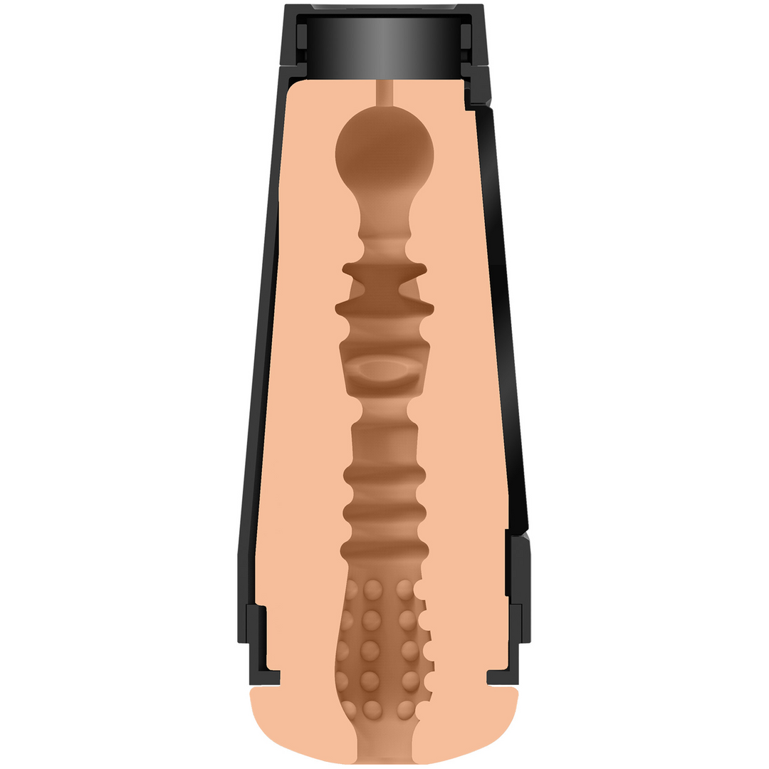 Binnenin de sleeve vind je een uniek getextureerd interieur. Dat betekent dat de binnenkant niet egaal is, maar bestaat uit verschillende structuren die je bij elke beweging voelt. Hierdoor krijg je geen “vlak” gevoel, maar een afwisselende sensatie over de gehele lengte. Het maakt niet uit of je rustig wilt ontdekken of juist wat intensiever wilt gaan; de texturen reageren op jouw tempo en beweging.