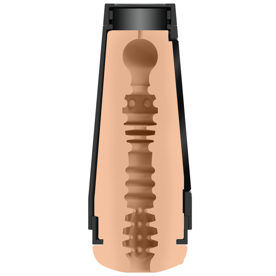 De binnenkant bestaat uit ULTRASKYN in combinatie met thermoplastisch elastomeer (TPE). Deze materialen staan bekend om hun zachte, flexibele structuur die dicht in de buurt komt van een huidachtig gevoel. Ze geven mee waar dat moet, blijven strak waar dat prettig is en zorgen voor de warme, uitnodigende sensatie die zo typerend is voor deze realistic masturbator.