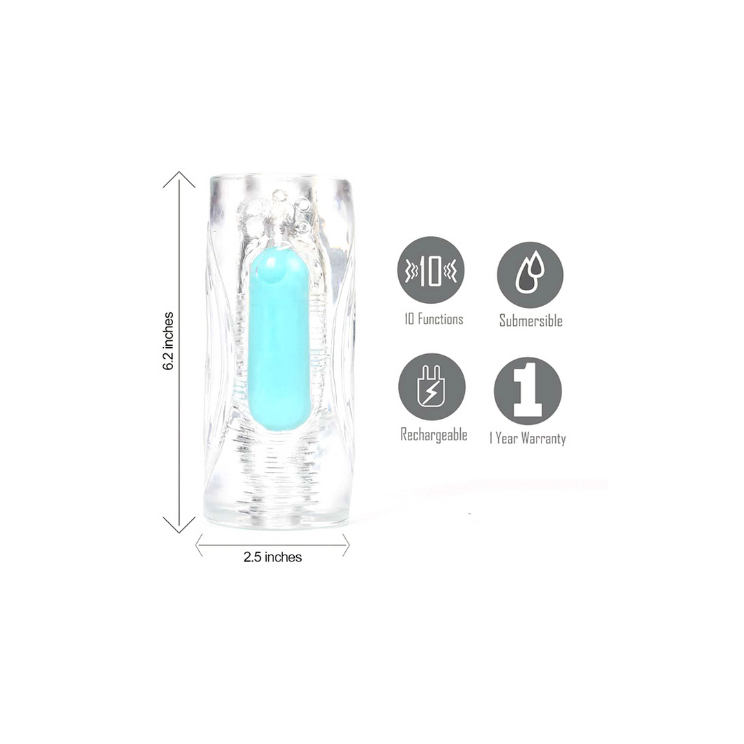 Deze vibrerende masturbator met 10 standen in transparante uitvoering is een fijne keuze voor mannen die hun solo-momenten willen verdiepen met krachtige vibraties en een comfortabele, flexibele pasvorm. De stroker is ontworpen om je op een makkelijke, toegankelijke manier te laten genieten van vibraties rond je penis, zonder ingewikkelde instellingen. Dankzij de oplaadbare bullet en het waterproof design is dit een masturbator voor mannen die houden van gemak, variatie en ontspanning, zowel in bed als bijvoorbeeld onder de douche of in bad.